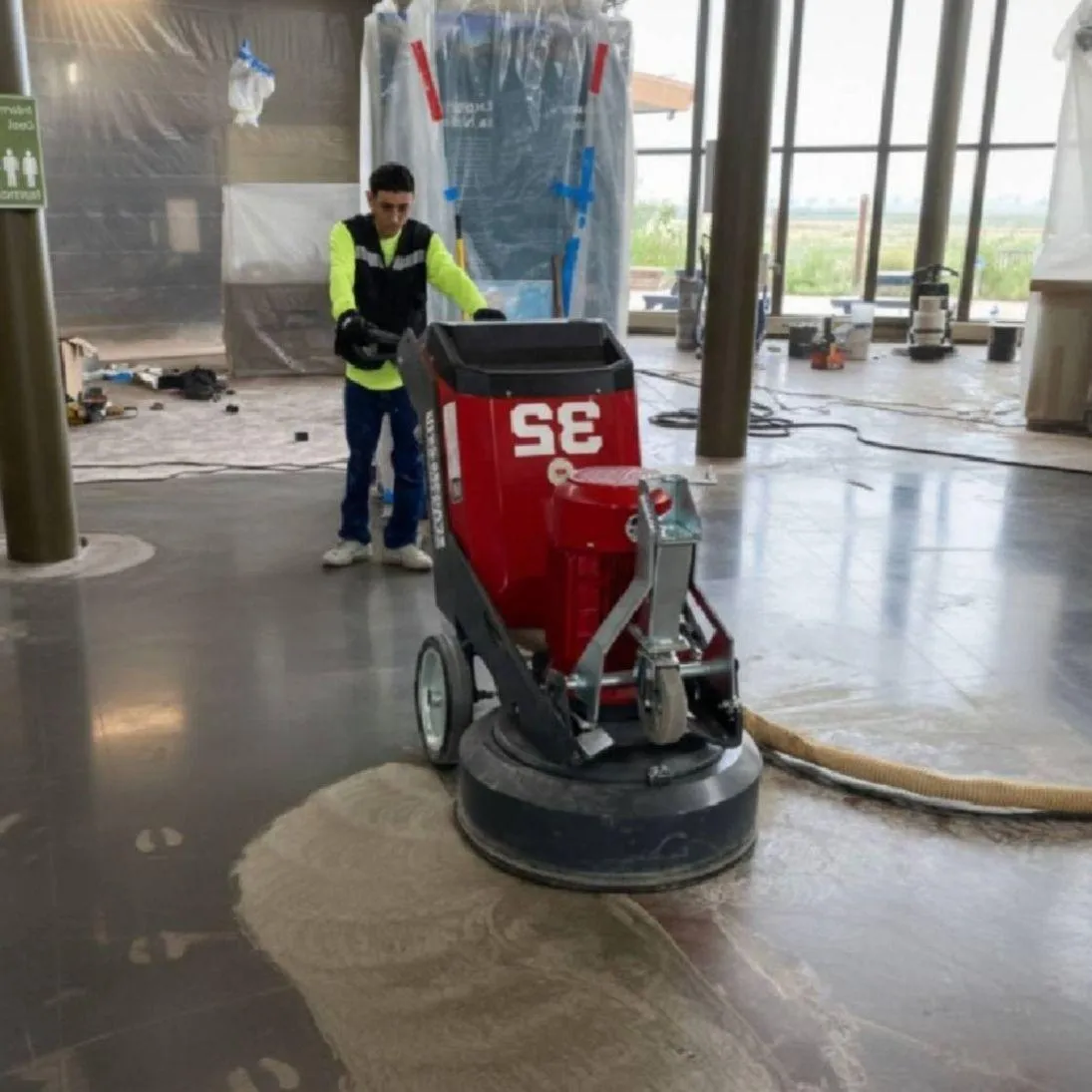 Discover a modern and efficient way to revitalize your concrete surfaces in commercial and industrial environments. Our service not only enhances aesthetics but also reduces maintenance costs. It’s a versatile solution for renovating existing floors or installing new high gloss finishes.